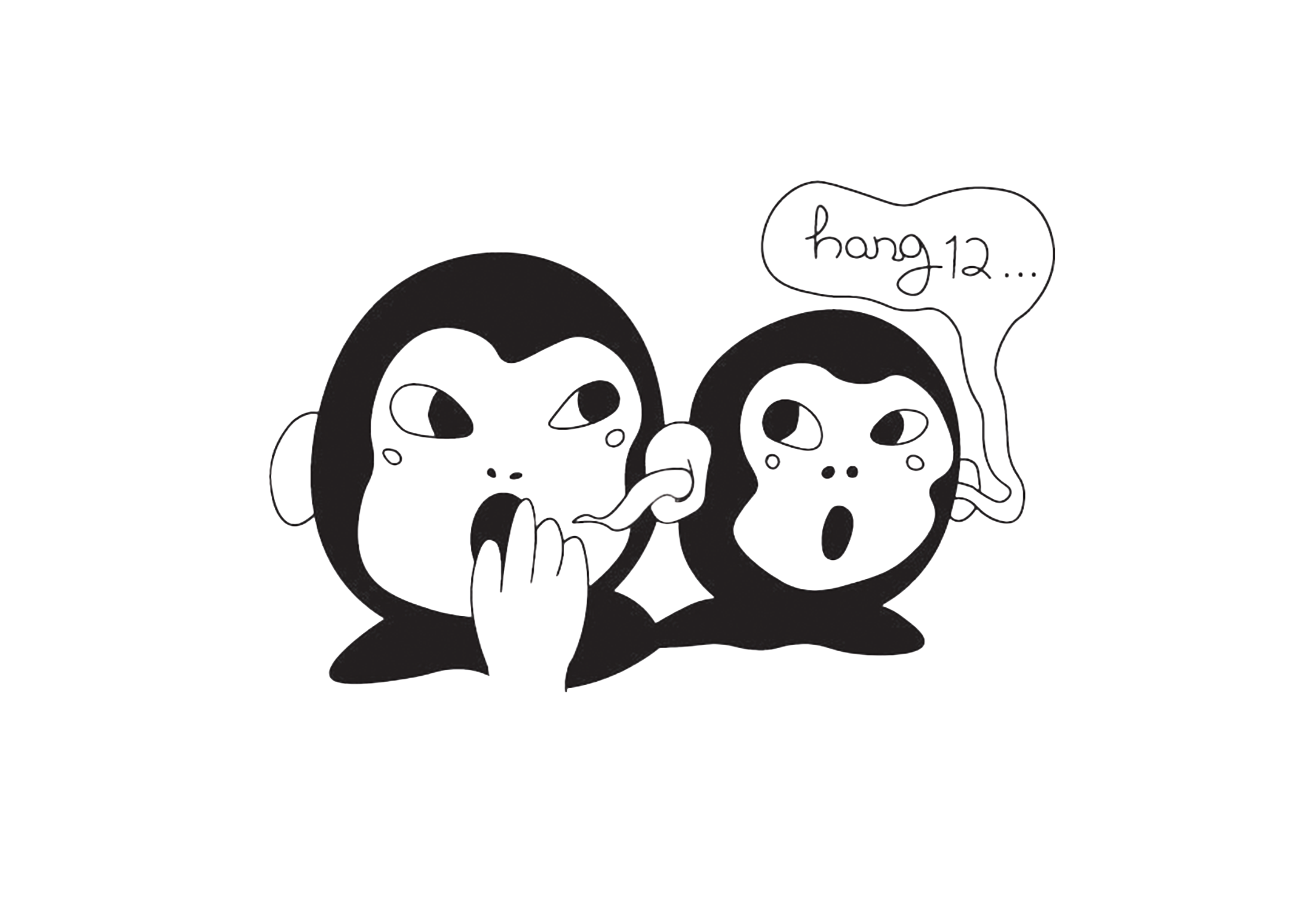 T-shirts, totes, and stickers designed and printed by the Hang 12 Team!